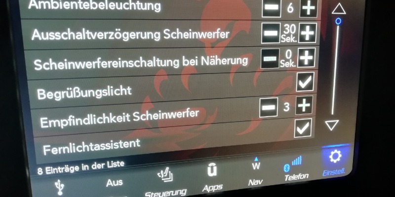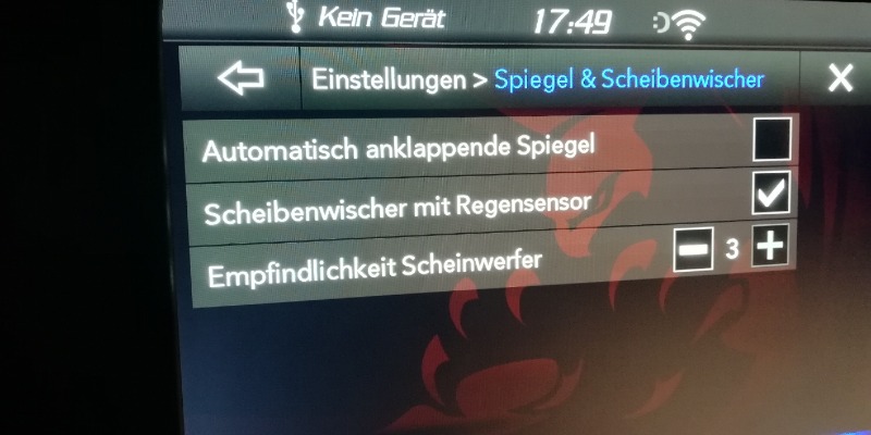 es gibt nämlich ein Extra Menü für Scheinwerfer, warum sollte also die Scheinwerferempfindlichkeit (was immer das auch sein könnte) unter "Spiegel und Scheibenwischer" sein?
