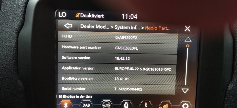 Jeep hat nun mitgeteilt, das es immer mehr Fälle gibt, die diverse Probleme mit der Technik haben, es soll laut Jeep am Panasonic Radio liegen, ob die Steuerung dazu gehört kann ich nicht sagen, auf jeden Fall soll Panasonic mitgeteilt haben, das sie mit Hochdruck daran arbeiten eine Lösung zu finden, ich bin gespannt wie die Lösung ausfällt. Morgen wollte sich Jeep bei mir nochmal melden, was die Werkstatt gesagt hat, obwohl sie es ja jetzt besser wissen, nachdem sie telefoniert haben. Doch Mal schauen was die sagen! Es bleibt weiter spannend!!!!!