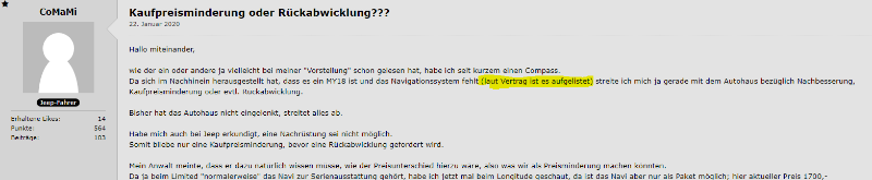 • es steht im Vertrag, wie auch auf der Rechnung "Navigationssystem"