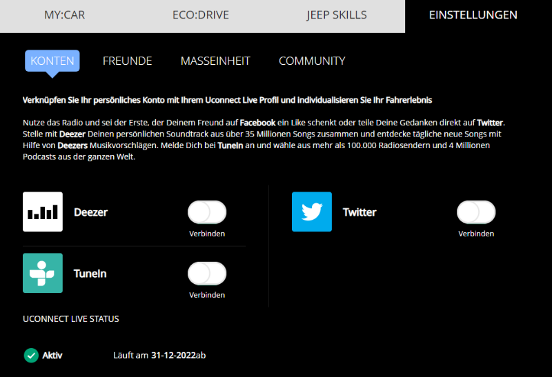 • Mal eine Frage, wenn man auf die App unter Uconnect live Services geht, steht oben rechts in der Ecke... Läuft am 31.12.2020, was bedeutet das? Ist es ein Tippfehler und heißt das, das es abläuft? Danke