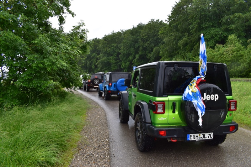Gestern noch in Langenaltheim beim Matsch umwühlen, heute zur großen Allgäuausfahrt der Facebook Gruppe „Jeep Wrangler Bayern“ gewesen. Es hat zwar Dauerregen gehabt, aber trotzdem war es toll. Überwältigende Teilnahme von 23 Wranglern (JK, JKU, JL und JLU). Vom Monsterumbau mit Hemi V8 bis gerade mal 1 Tag alter Sahara JLU war alles in unterschiedlichen Höhenlagen (Lift/ohne Lift) vorhanden.