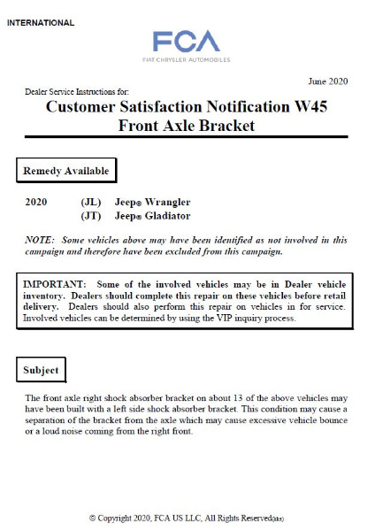 MY20 Recall W45 - Front Axle Bracket
