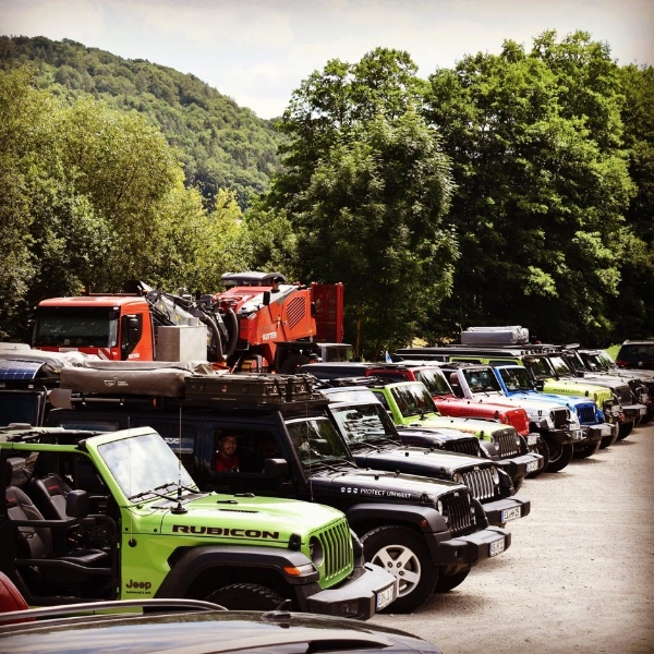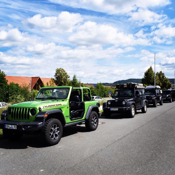 Gestern, 4.7.2020, fand in der Fränkischen Schweiz eine schöne Jeep Wrangler Ausfahrt der facebook Jeep Wrangler Bayern Gruppe statt. Kurzfristig anberaumt und geplant, fanden sich 18 Wrangler aus Franken, Oberpfalz, München, Bad Tölz, Würzburg, Kronach, Aichach, Allgäu Fanden zusammen und zogen im Konvoi durch die Fränkische Schweiz und ließen sich auf Burg Rabenstein/Ahorntal im Biergarten die fränkische Küche schmecken. Wetter war traumhaft. Hier ein paar Bilder vom Zwischenstopp in Egloffstein, unterhalb der Burg Egloffstein.