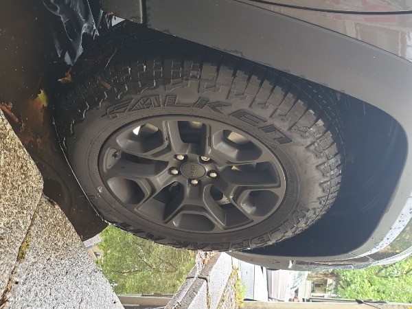 Die zwei andern Bilder zeigen einmal die Falken AT3, die ich sehr empfehlen kann. Nicht ganz so robust wie die Grabber, scheint mir, aber bessere Straßenlage und daher perfekt für den Cherokee.