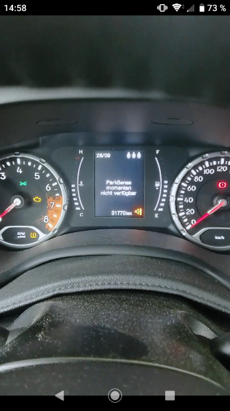 Ich habe seit ca einem halben Jahr das Problem, dass beim Starten des renegade (bj 2018) die Nachricht 'Audiosystem nicht verfügbar' und 'Parksensoren momentan nicht verfügbar' kommt. Das Radio geht dann zwar, die Parksensoren bleiben aber off. Auch ein Neustart bringt nichts. Ich habe den Fehler mal per video dokumentiert da meine Werkstatt mir unterstellt hat, 'unabsichtlich beim parksensor-off Knopf angekommen' zu sein (bin ja eine Frau und die sind bekanntlich dumm was autodinge angeht). Leider ist das vid zu groß darum hänge ich hier Screenshots an. Wenn ich nach der Fehlermeldung den parksensor knopf drücke, blinkt dieser einige male und leuchtet dann wieder (steht also auf off).