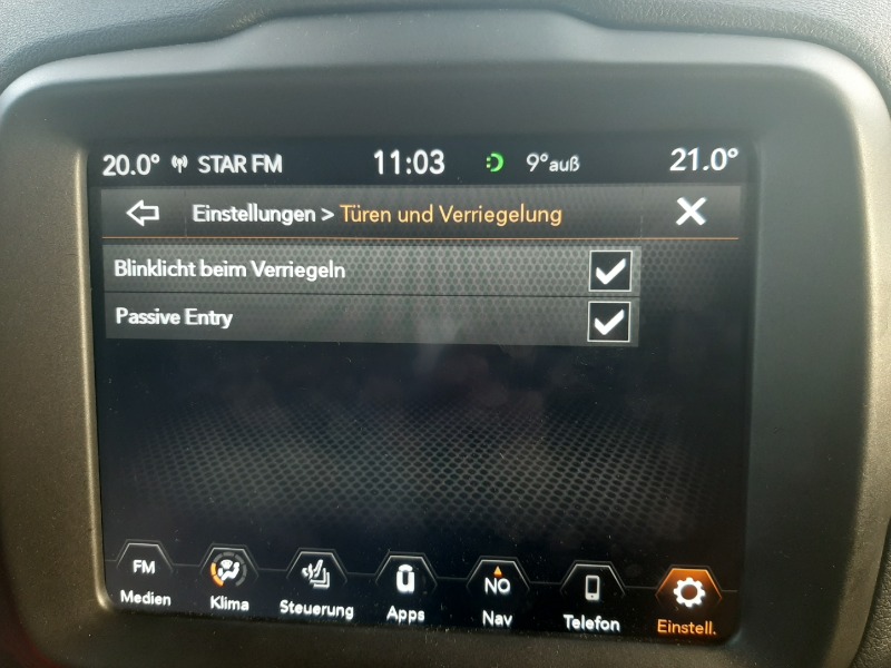 also ich hab bei unserem Renegade nochmal geschaut.....da gibt es nur passiv entry an oder aus.