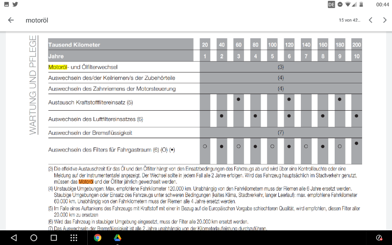 Alles anzeigenBeim Diesel (BU) ist die Vorgabe laut Wartungsplan: