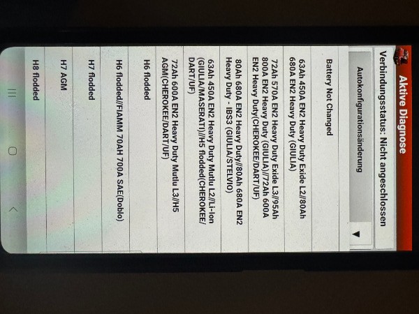 Drittens: Liest die App nach Grobeingabe des Fahrzeugtyps "Renegade BU" das Steuergerät aus, ehe man zu der Auswahl kommt. Niemand zwingt Dich, den Batterietyp per [definition=5,0]OBD[/definition] zu ändern. Ich habe nur den Wunsch erfüllt und nachgesehen, ob es das wirklich gibt. Oh Wunder, es gibt das!