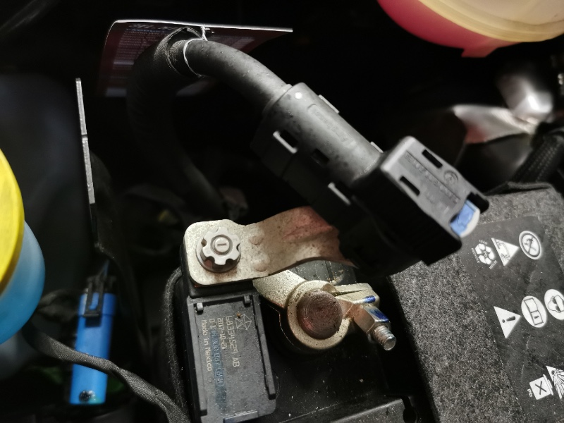 Am Minuspol ist allerdings der Batteriesensor angebracht (das graue längliche Teil mit dem Drücker-Schnellverschluss). Beim Ghibli hat es als "reset" immer gereicht, dieses Teil abzuheben.