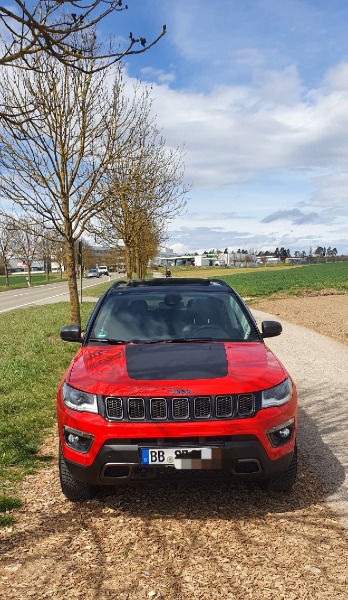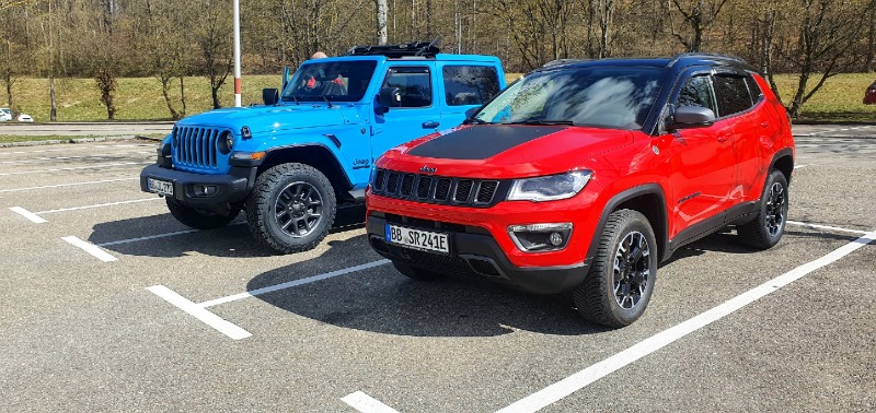 Mein neuer Jeep Compass Trailhawk 1.3 T4 Plug- In- Hybrid 177kw ( 240 PS ) in Colorado Red mit schwarzem Dach. Da vor hatte ich einen Suzuki Vitara mit 6cm Fahrwerk höherlegung. Sorry für den langen Text, bin halt ne Frau