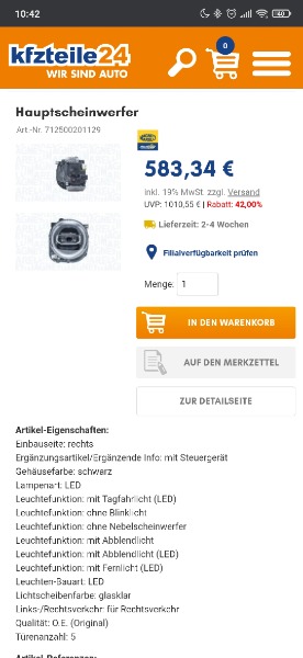 Jetzt hab ich die Scheinwerfer günstig bei KFZTeile24 gefunden und wollte fragen ob ein Tausch ohne weiteres möglich ist.