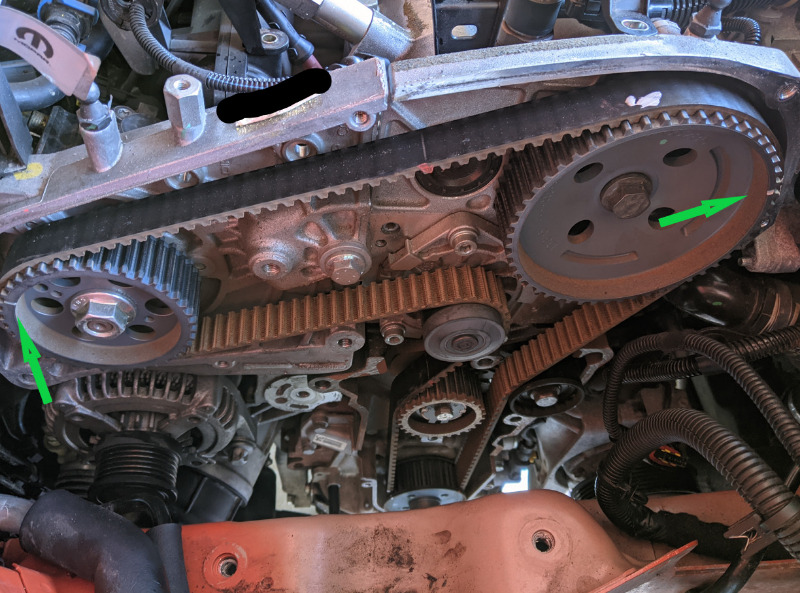 Wenn man es noch nicht gemacht hat, sollte man sicherheitshalber einen ganzen Tag rechnen. Ich beschreibe es mit Arretierwerkzeugen für die Wellen. Es geht auch ohne, da deutliche Markierungen an den Zahnrädern und am Zahnriemen angebracht sind. Ob man es ohne macht, sollte man selbst entscheiden. Auf jeden Fall muss man sich aber bewusst über die Funktion des Riemens sein und entsprechend genau und vorsichtig arbeiten.