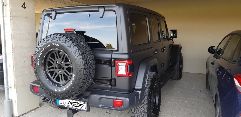 Nun hat es sich allerdings ergeben, dass unser Händler einen Sahara/ Overland mit voller Hütte, den modifizierten Rädern und der Folierung (siehe Signatur) reinbekommen hat.