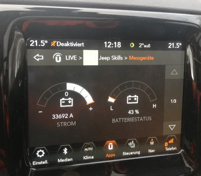 Das mit den 33000 A in der Anzeige ist doch aber ein alter Hut und liegt an der Softwareversion des Uconnect.