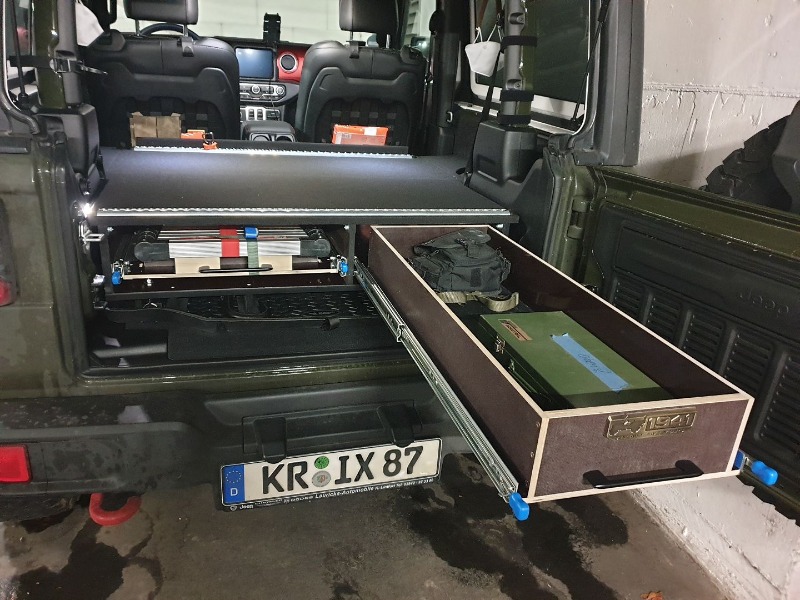 ein sehr Interessantes Thema, an dem ich gerade auch dran bin, heute habe ich meinen Ausbau bei einem kurzem Wrangler Rubicon JL fertiggestellt und montiert.