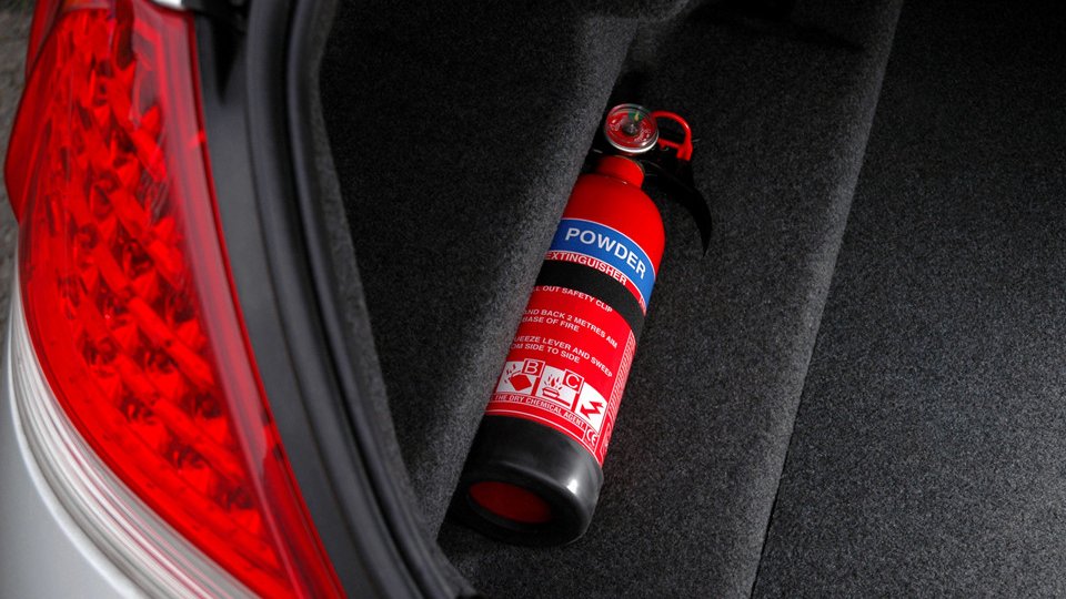 Ich habe noch nie einen Feuerlöscher im Auto versteckt ... wenn jedoch, läge er auch in der Ersatzradmulde, gleich rechts neben der Schwiegermutter