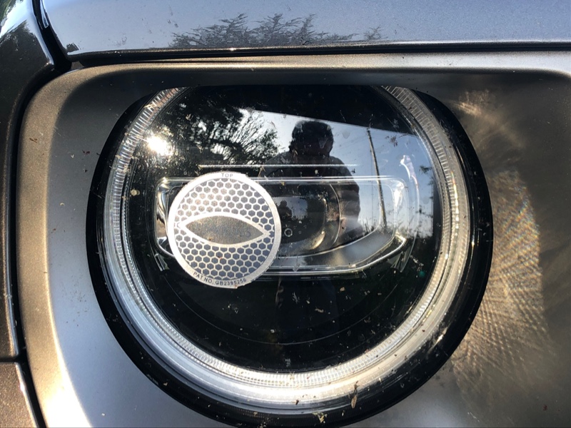 Der Trick ist glaub ich einfach links neben kleinen Punkt am Scheinwerferglass den Babberl drauf pappen. Der Wrangler hat ja auch runde Scheinwerfer. Im Zweifel mal vor eine Wand stellen, Licht an und den Aufkleber davor halten, sollte halt nicht mehr nach rechts strahlen.