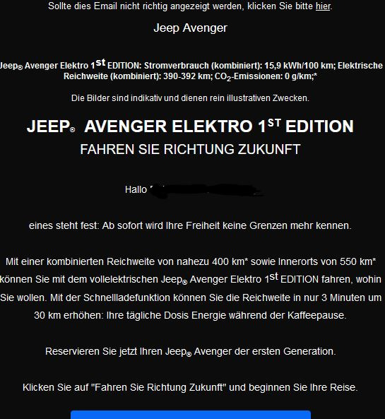 seit meinem letzten Werkstattaufenthalt, bei dem ich wohl meine e-mailadresse hinterlassen habe, werde ich jetzt regelmäßig von Jeep über das Neueste, Beste, Interssanteste, was der Laden zu bieten hat, aufgeklärt.