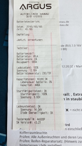 . Beim Batteriecheck wurde folgendes festgestellt.