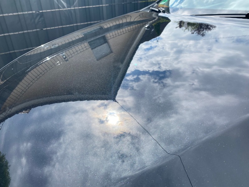 - Auf das noch nasse Fahrzeug sprühen wir jetzt einen feinen Nebel aus unserer Sprühflasche mit der Mischung aus Detailer und destilliertem Wasser. der Effekt ist jetzt, dass das Wasser vom Absprühen anfängt abzuperlen und wir nach der Trocknung einen schönen Glanzeffekt und ein leichte Versiegelung haben.