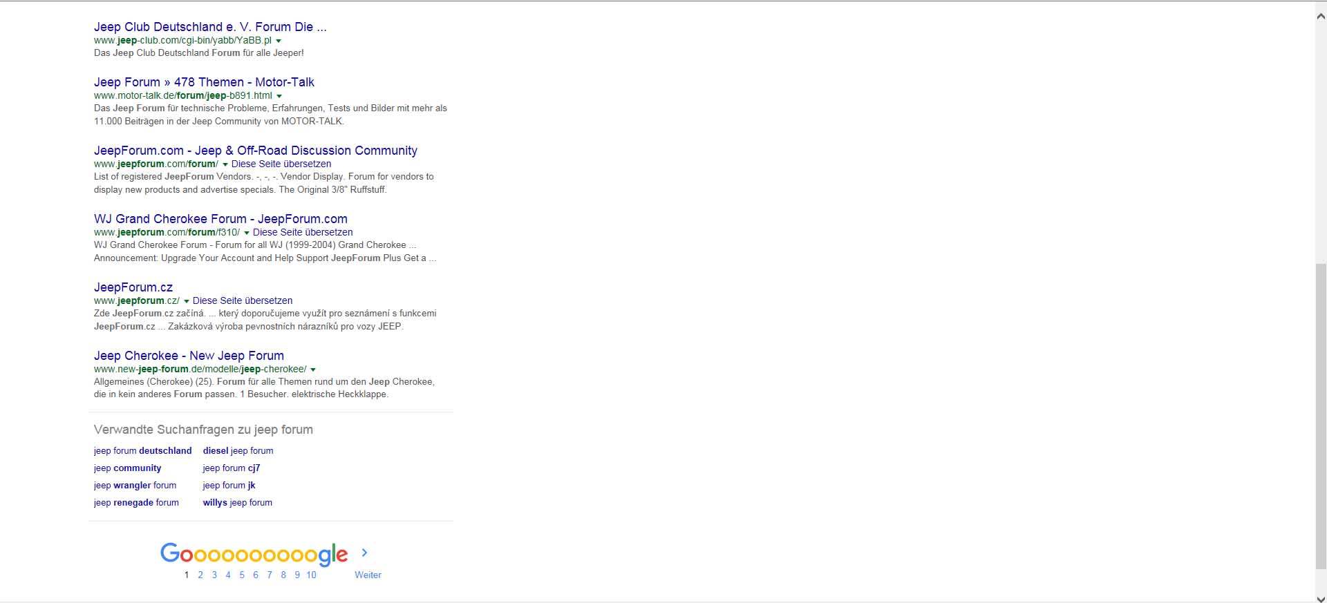 Ergebnis im IE und Firefox = auf der 1. Seite, als letzter Link kommt http://www.new-jeep-forum.de/modelle/jeep-cherokee
