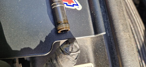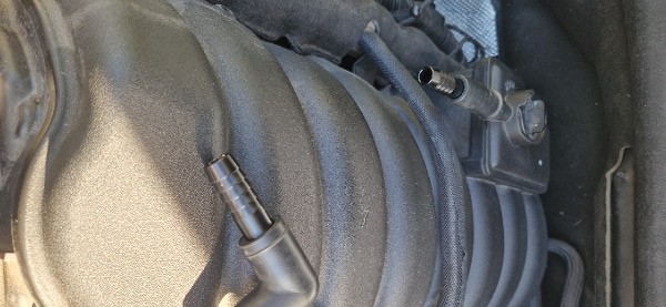 Erstaunlicher Weise war im Überlaufrohr vom Sammler der Kurbelgehäuseentlüftung zur Ansaugung wirklich Öl (04).
