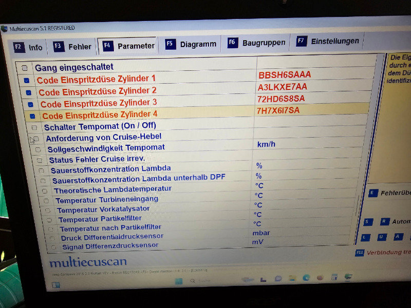 Ich habe einmal die Codes der Einspritzdüsen überprüft und mit den abgespeicherten im Steuergerät abgeglichen.