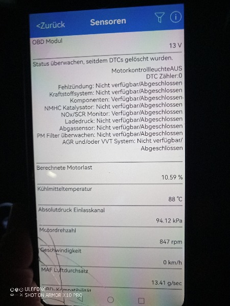 Meine treue Beifahrerin hat des mit Car Scanner versucht, dort wurden Daten Übertragen, siehe Bilder.