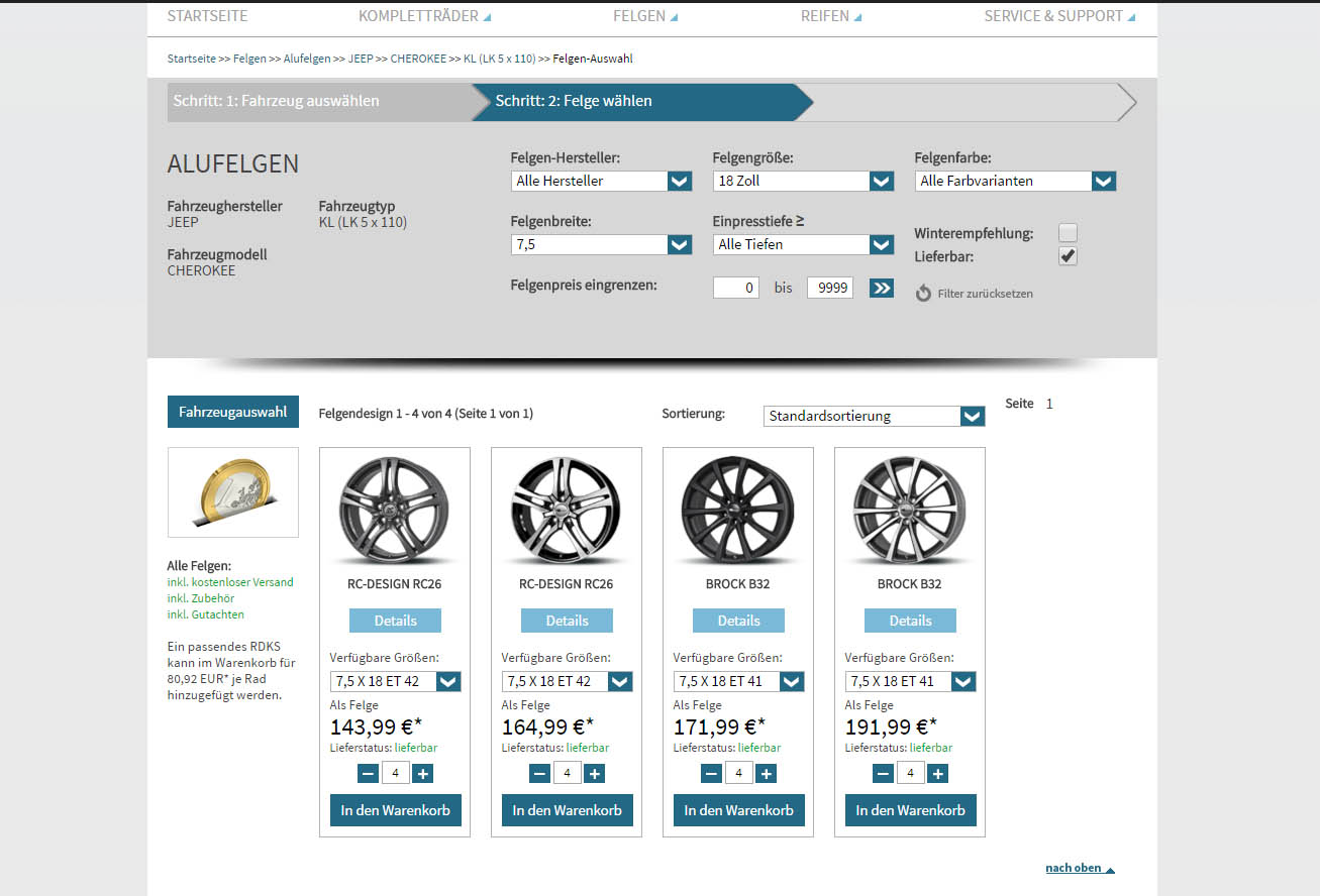 So langsam wird es Zeit sich festzulegen... in den Maßen 7,5x 18 gibt es genau zwei Felgen für den Cherokee...