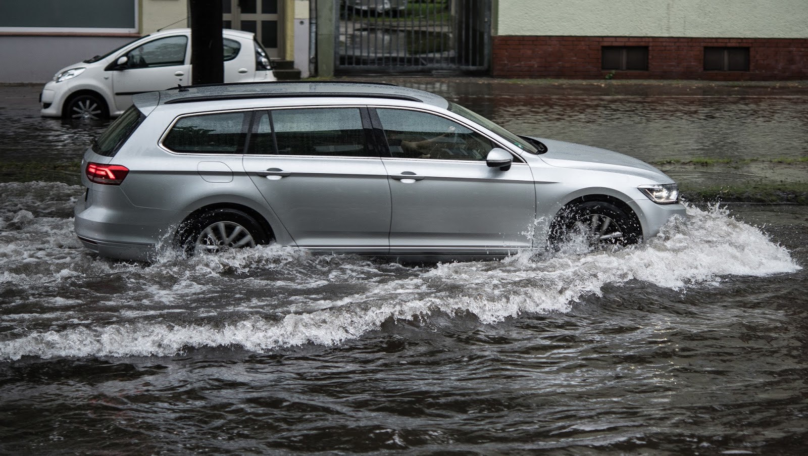 Grundsätzlich gilt für Autofahrer bei anhaltendem Starkregen: Lässt sich die Fahrbahn nicht mehr im Wasser erkennen, sollte man vorsorglich eine Schwimmweste (meist im Kofferraum neben der Warnweste) anlegen. An Kreuzungen und Abzweigungen haben Segelfahrzeuge vor motorisierten Fahrzeugen Vorfahrt. Ab einer Wassertiefe von 1,20 Metern ist zudem die Nationalflagge des Besitzers am Heck des Fahrzeugs zu hissen