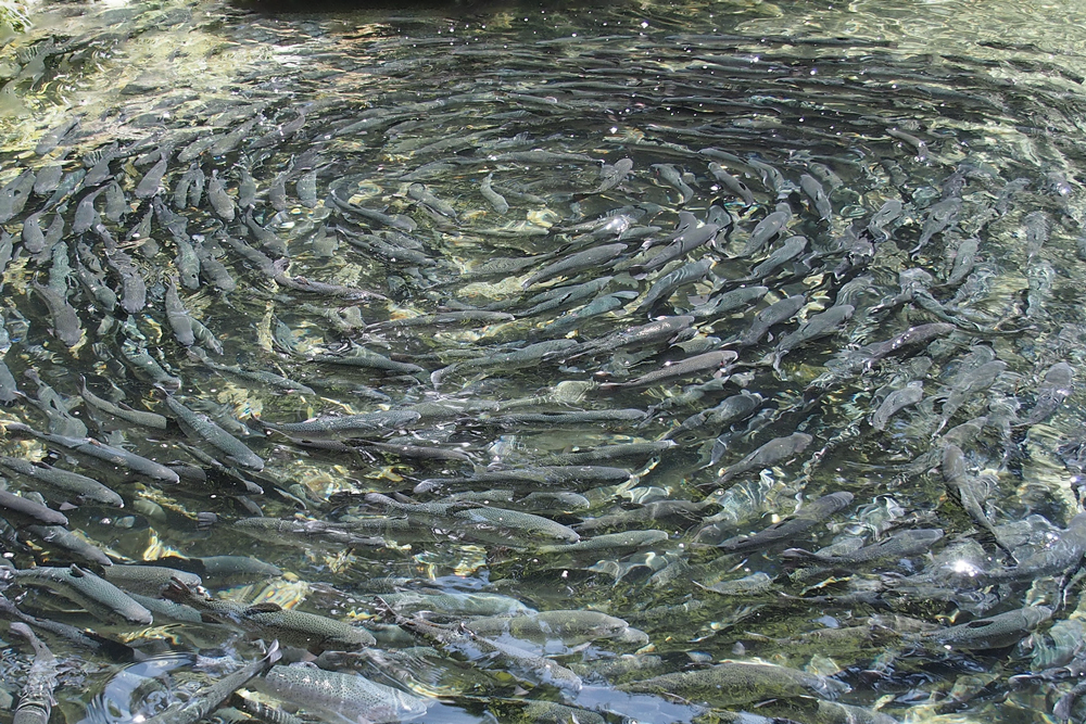 Dieses Bild zeigt einen Forellenschwarm in einem Kreisverkehr heute Morgen in Paderborn.