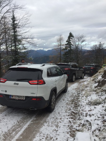 Dazwischen zwei tolle ausfahrten mit tollem ausblick und teilweise gar nicht so leichtn passagen. Schöne steigungen, ordentlich verschlammt und rutschig. Der cherokee werkelt sich auch mit AD1 überall munter nach oben, als bräuchte man nicht mehr. Lediglich einmal bei einer kuppe nach einer schlammigen steigung, bei der man mit schmackes rauf musste, hat der bauch etwas den boden gestreift. Aber war denooch kein problem und musste einsehen, dass der cherokee wesenrlich mehr kann, als ich ihm zugetraut hätte.