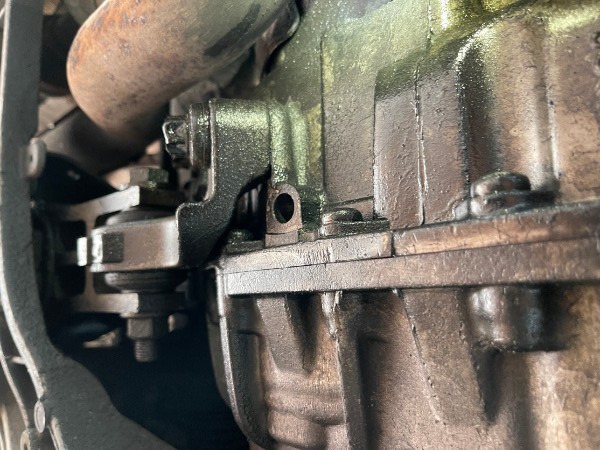 Verschraubung hatte sich komplett gelöst(es waren keine Schrauben mehr vorhanden) hier durch hat sich das Verteilergetriebe (PTU Einheit) immer mehr bewegt und es kam zum Bruch eines Halters und dem Ausbrechen einer Befestigungs Schraube an der PTU Einheit.