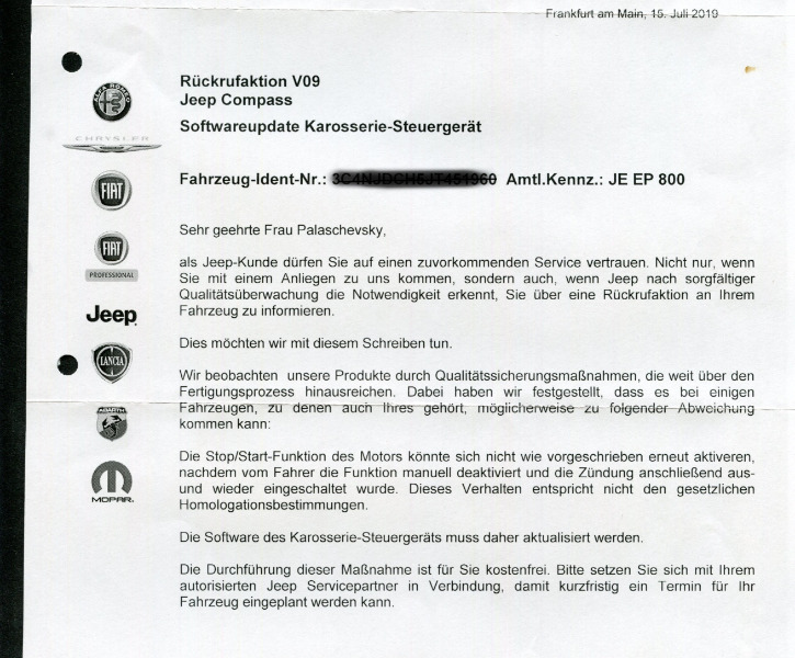 Dann wurde dem Compass die Dashcam „iTracker GS6000.A12“ verpasst, einfacher Einbau mit verstecker Kabelführung zur Zigarettenanzünderbuchse. Ich fühle mich einfach wohler damit, nachdem ich mit dem Modus meiner Obrigkeit, beim Raming mit einer sich öffneten Fahrertür, meine Unschuld beweisen konnte. Die Polizisten freuten sich diebisch über das schöne Video, dass ich sofort an Ort und Stelle vorführen durfte, die Gegenzeugen waren sprachlos. Die Schadensregulierung ging anstandslos mit € 5.000,00 über die Bühne, viel Äger erspart.