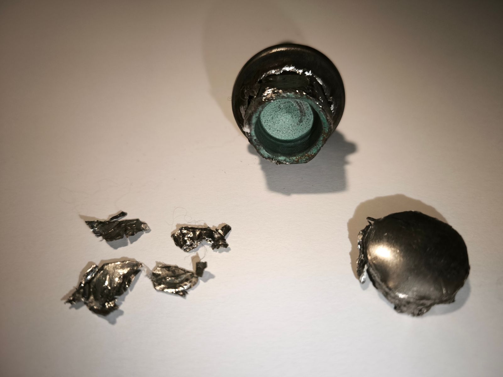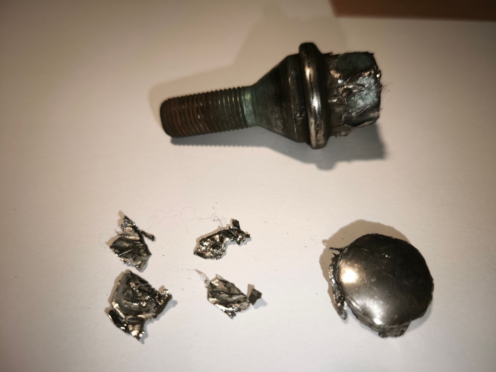Nachdem die Chromfolie abgeblättert war kam darunter ein Schraubenkopf zu Tage, der allerdings nur aus 2mm Rand bestand