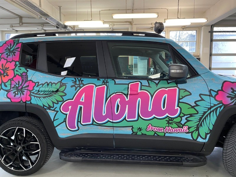 und zweitens, weil ich noch einen Dachträger montiere, wo ein Surfbrett als Deko drauf kommt, passend zum Hawaii-Style. Und da wäre der Digitaldruck eh fehl am Platz.Hab nur leider keine Fotos parat, ich weiß auch nicht, ob die Folie schon drauf ist. Ich bin aktuell beim Geschehen gar nicht dabei