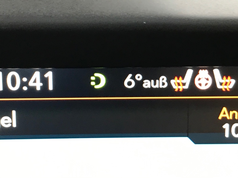 1. Auf der Frontscheibe hat sich leicht links von der Mitte unten ein weisser Fleck gebildet (siehe Foto - bei Lichteinfall besonders gut zu sehen). Es liegt kein Riss, Verschmutzung o.ä. vor. Der „Fleck“ lässt sich weder innen noch außen beseitigen und hat auch nichts mit beschlagener Scheibe zu tun. Hat jemand damit Erfahrungen ?2. Die Lenkradheizung schaltet sich nach ca. 50-60 Minuten aus (kann dann auch wieder eingeschaltet werden). Ist das normal ?(meine Frau würde am liebsten stundenlang mit warmem Lenkrad fahren).