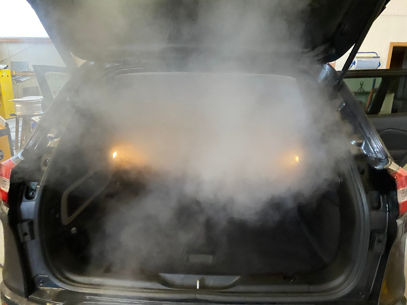 Das Fahrzeug war top, dennoch bleibt kein Auto auf dem Hof verschont, also hat der Traili eine komplette Tiefen-Reinigung erhalten. Ganz ohne Chemie. Dazu war ich bei einem befreundeten Aufbereiter der einen Hochdruck Heißdampfreiniger hat. Das hat den großen Vorteil, dass ohne Chemie und mit sehr wenig Flüssigkeit gearbeitet wird. Weiterhin schont diese Art der Reinigung die Bauteile und auch die elektrischen Verbindungen.