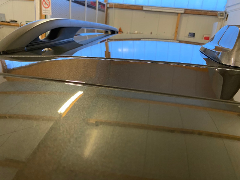 Da der "Freundliche" schon mit einer "heavy cut" Politur vorgearbeitet hat (nur mal eben das Dach vergessen, oder naja, der Kunde sieht's ja nicht) wurde das Auto komplett mit einer ganz leichten abrasiven Politur nach dem Clay Bar Knetdingsbums bearbeitet. Auf dem Dach war allerdings das komplette Programm notwendig