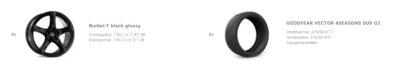 Der Wagen wird nur leider in den nächsten Tagen mit Sommerreifen ausgeliefert und ich möchte direkt auf die Kombination aus neuen eigenen Ganzjahresreifen und Felgen wechseln.Hierzu habe ich nach der Auswahl meines genauen Wagens bei einem Anbieter den Ergebnisfilter auf ABE eingestellt und anschließend folgende Kombi bestellt, nachdem eigentlich nur 16'' realistisch waren: