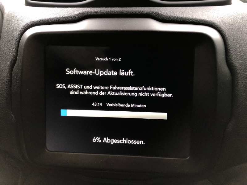 Nein ich habe nicht gewartet. Das Auto stand in meiner Einfahrt. Das Auto hat in der Telematikbox ne eigne E-Sim, darüber wird das Update geladen. Jeep kann ja nicht voraussetzen daß man im Besitz eines Smartphone ist...Die besagte E-Sim scheint auch noch zu funktionieren, denn den Standort des Auto‘s kann man in der App wie immer sehen. Nur aktualisiert es nicht mehr automatisch, man muß das manuell anstoßen.