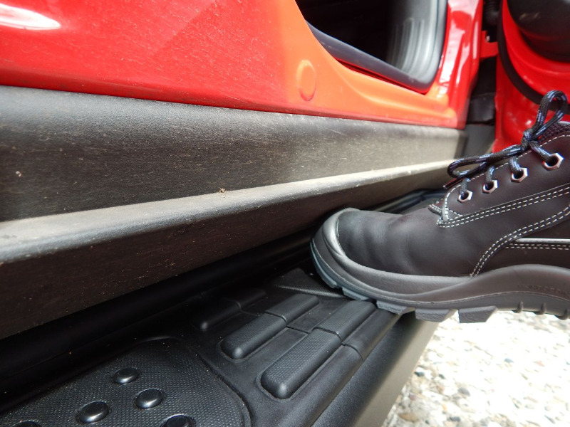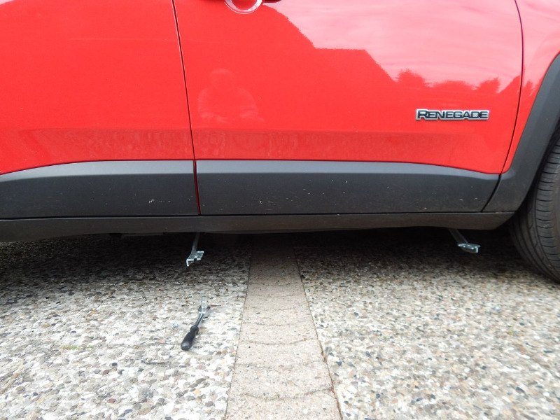 Es ist eigentlich ganz einfach, die 4 Muttern unter dem Trittbrett lösen, das Trittbrett etwas vor bewegen dann die Hinteren Schrauben zur Seite schieben und schon kann man das Trittbrett nach vorne weg nehmen. Anbau genau so leicht.