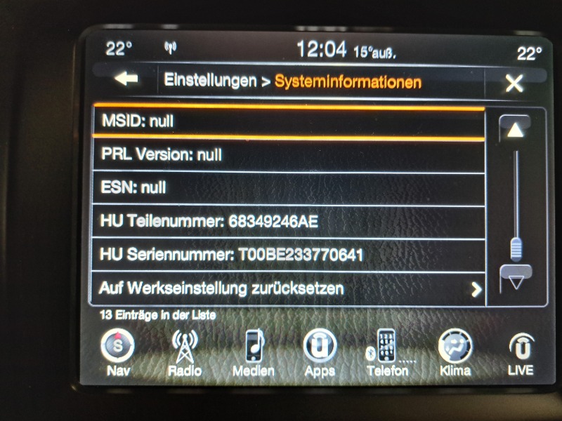 Wer kann mir helfen, mein Uconnect 8,4 NAV ist demnach Baujahr 2016,