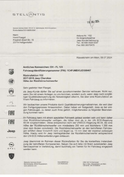 waren ja in der Toleranz ! Aber STELLANTIS weigerte sich, dieses ja anzuerkennen.