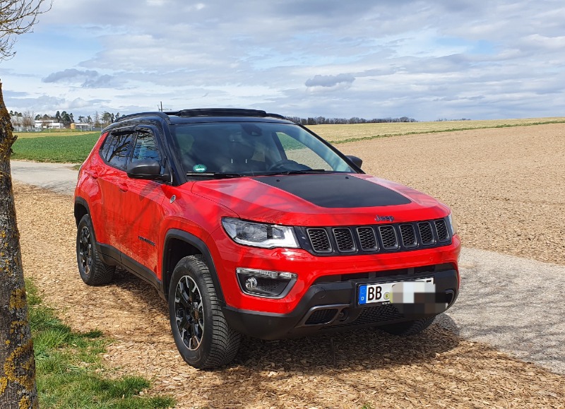 Wir wollten eigentlich für meinen Mann einen neuen Jeep kaufen, da er ab diesem Jahr eine horrende Strafsteuer zahlen musste. Beim Händler angekommen hab ich nur gesagt schau mal was da steht und hatte nur noch Augen für meinen Compass Der Verkäufer hat mir gleich alles gezeigt ich war total begeistert. Aber mein Mann hat dann auch noch seinen Jeep Wrangler Sahara 80th in Himmelblau bekommen Wir haben dann unsere Jeep's nach Ostern abgeholt und sind natürlich jetzt auf Entdeckungstour. Mein neuer Jeep Compass Trailhawk 1.3 T4 Plug- In- Hybrid 177kw ( 240 PS ) in Colorado Red mit schwarzem Dach. Da vor hatte ich einen Suzuki Vitara mit 6cm Fahrwerk höherlegung. Sorry für den langen Text, bin halt ne Frau aber danke fürs lesen