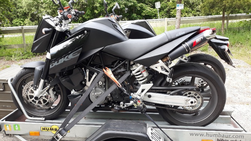Für die kleinen Strecken /zumeist im Urlaub) , habe ich eine KTM 625 SMC für die breiteren Straßen (zu Hause) eine 990 Superduke.
