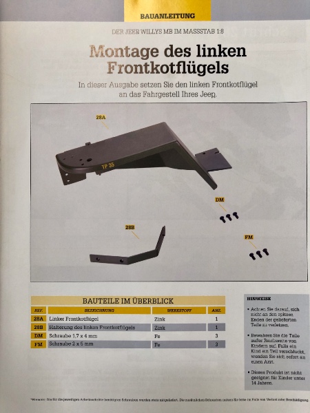 heute habe ich mich endlich aufgerafft, um die nächsten Ausgaben zu verbauen. Ich fasse Heft 28 und Heft 29 zusammen, da hier der rechte und der linke Kotflügel vorne verbaut werden.