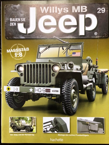Wie bereits vermeldet, heute nur ein schnelles Update zu den Heften 33 - 35. Da hier lediglich weitere Reifen montiert und alle Reifen im Anschluss angebaut werden, mache ich das im Sammelthread. Lediglich der Anbau der vorderen Stossstange aus Heft 35 ist noch eine Erwähnung wert. Die Artikel in den Heften widmen sich den europäischen Jeep-Ablegern/Konkurrenten.