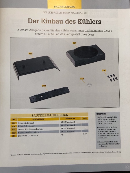 Und schon sind wir wieder am Ende der Monatslieferung. In Heft 31 wird der Kühler montiert. Keine Herausforderung.