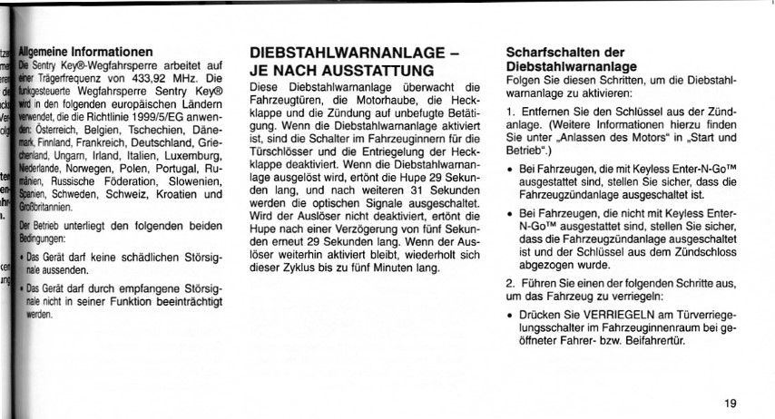 Es gibt zwar eine Sicherung lt. Bordbuch für die Alarmanlage unter den Armaturenbrett, aber lt. Händler sollte man da die Finger vom stilllegen lassen....
